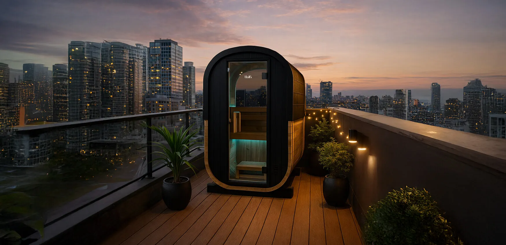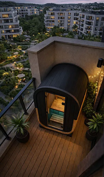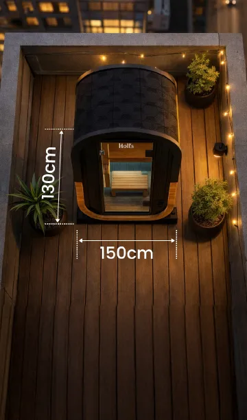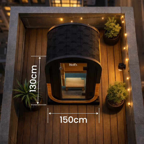 Avec une emprise au sol optimisée de seulement 130 x 130 cm, ce sauna compact s’intègre parfaitement aux terrasses et environnements urbains où chaque mètre carré compte. Son format maîtrisé permet une implantation précise, sans compromis sur le confort intérieur. Une solution premium pensée pour maximiser l’usage des espaces extérieurs restreints tout en conservant une présence architecturale forte.
