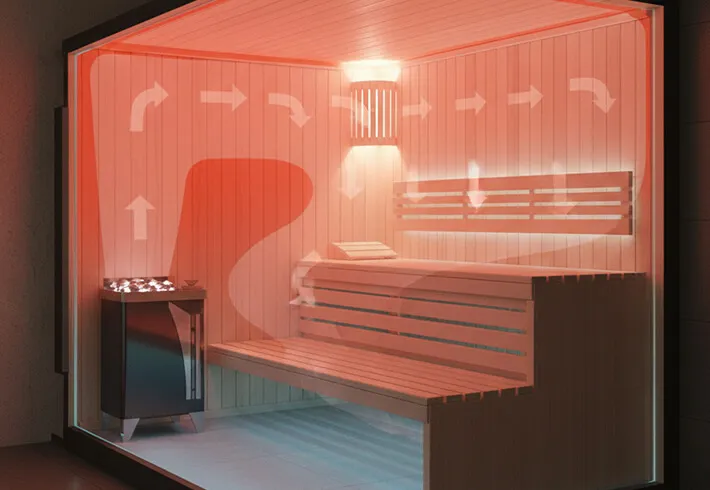 La technologie vapeur d’un sauna repose sur l’échauffement de pierres volcaniques sur lesquelles l’on verse de l’eau, créant un nuage de vapeur qui enveloppe le corps d’une chaleur douce et humide.