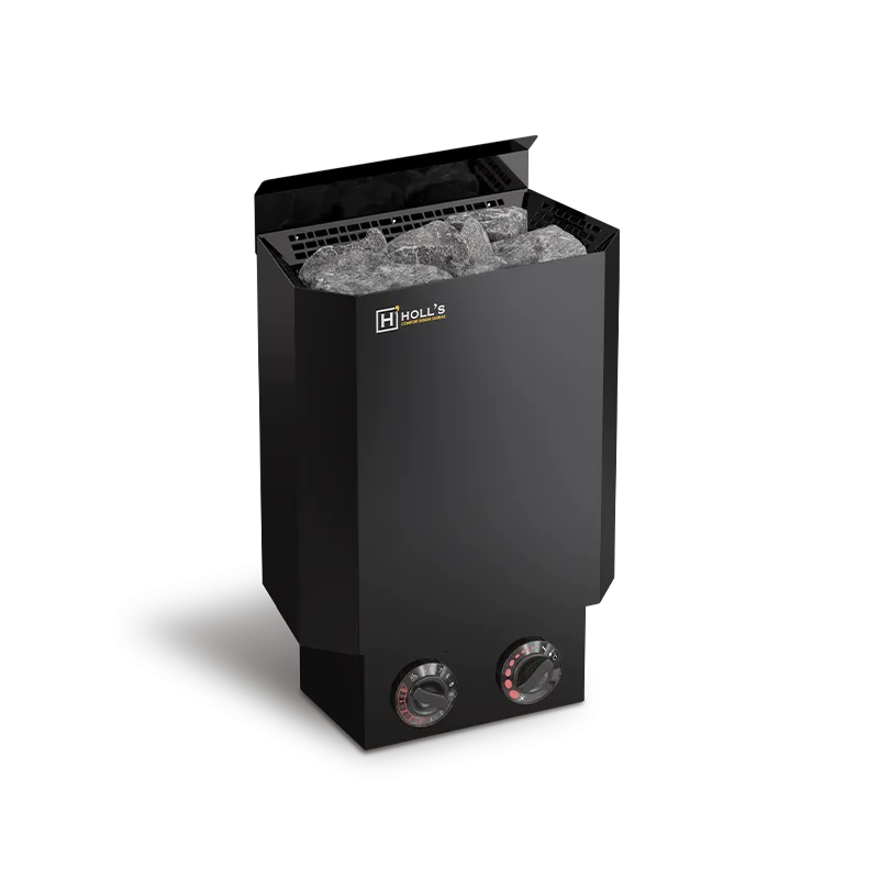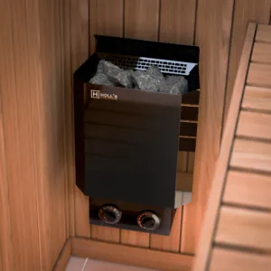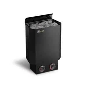 Le Poêle Vulkano Black Mini Combi Holl’s est la solution idéale pour les petits espaces sauna. Sa puissance de 3,5kW est parfaitement calibrée pour des volumes de 3 à 6m³, et son format compact (345 x 300 x 525mm) lui permet de s’intégrer dans les saunas les plus exigus. Le design tout noir et la ligne Vulkano apportent une esthétique contemporaine très appréciée des clients. Compatibilité avec les unités de contrôle Holl’s (classique HL-SAU-B-CF-V2 ou avec télécommande HL-INC-SET-V2). Garantie 2 ans.